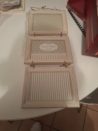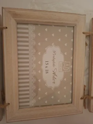 Portafoto in legno e tessuto beige