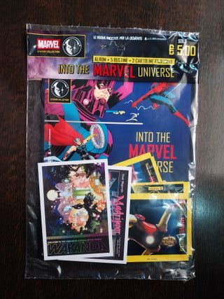 Starter pack per la collezione di figurine Into the Marvel Universe. - Album - 5 bustine di figurine - 2 cartoline esclusive RICHIEDERE INFO PER raccolte ho anche ducK90, paperino 85, topolino personaggi e..,. peanuts, ratman, deadpool, onepiece, super mario, into the marvel universe,stranger things, naruto, dragonball universal sticker album, dragonball super ultimate sticker collection, animali record bestiali, principesse, bluey, inside out 2,,, oceania2 stitch, ,,,,cucciolotti 2025 e 2024 figurine card qualche album e card limited GRAZIE