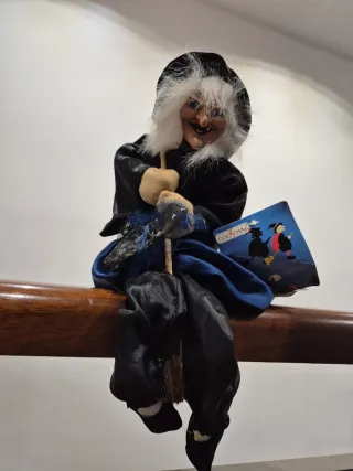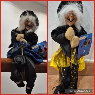 Vendesi coppia di befane, perfette per decorare durante il periodo natalizio. - Vestiti: nero e blu/nero e giallo - Dettagli con stelle dorate.