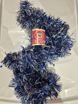 Aggiungi un tocco festivo al tuo albero con questo striscione decorativo. - Design scintillante blu e argento. - Piccole stelle decorative integrate.