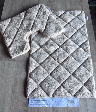 Tappeto Bagno 3 Pezzi Rombo (Nuovo Mai Usato) Tappeto In Spugna Composizione 100% Puro Cotone Composizione Set 3 Pezzi Uno Rettangolare 50x80 cm Due Giro Water 50x40 cm Colore Beige Fantasia Rombo Tappeto Bagno in Spugna Di Buona Qualità Morbida & Consistente Colori Compatti Con Ottima Lavorazione. Per informazioni Scrivere Pure