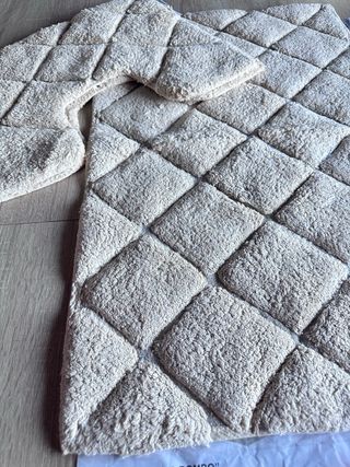 Tappeto Bagno Rombo (Nuovo Mai Usato) Tappeto In Spugna Composizione 100% Puro Cotone Misura 50x80 Colore Panna Fantasia Rombo Tappeto Bagno in Spugna Di Buona Qualità Morbida & Consistente Colori Compatti Con Ottima Lavorazione. Per informazioni Scrivere Pure