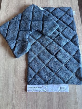 Tappeto Bagno 3 Pezzi Rombo (Nuovo Mai Usato) Tappeto In Spugna Composizione 100% Puro Cotone Composizione Set 3 Pezzi Uno Rettangolare 50x80 cm Due Giro Water 50x40 cm Colore Grigio Scuro Fantasia Rombo Tappeto Bagno in Spugna Di Buona Qualità Morbida & Consistente Colori Compatti Con Ottima Lavorazione. Per informazioni Scrivere Pure