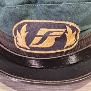 Berretto da ufficiale delle Ferrovie dello Stato. - Colore verde scuro. - Taglia 57. - Distintivo dorato con logo FS.