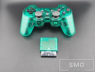 Controller wireless compatibile con Playstation 2, di colore rosso e verde. L'inserzione comprende 2 controller