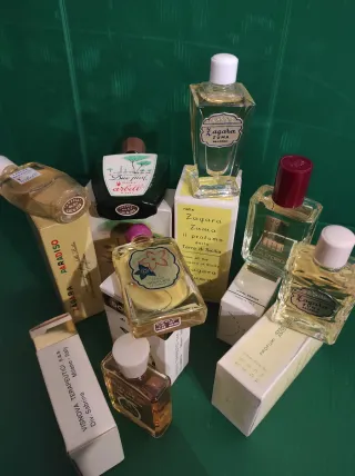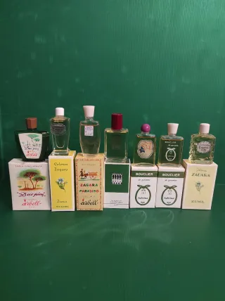 Lotto da 7 profumi Vintage composto da: 1 eau de Cologne Cà D'oro 30 ml prodotto da Vidal Venezia (ha un valore più alto rispetto agli altri profumi,il prezzoè in offerta prova) 1 Zagara Zuma di Sicilia 25 ml bottiglia alta 1 Zagara Zuma di Sicilia 25 ml bottiglia bassa 1 Zagara paradiso 25ml prodotta da Arbell Italia 1 colonia Bouclier prodotto da Arbell Italia 25 ml tappo bianco 1 colonia Bouclier prodotto da Arbell Italia 25 ml tappo fucsia 1 profumo Due Pini 25 ml (fragranza maschile). Sono profumi vintage originali integri nella loro confezione originale.Alcune scatole come quelle del due pini potrebbero avere incurvatur