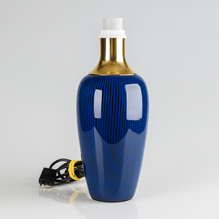 Design vintage/modernariato di grande impatto decorativo, ideale per soggiorno, studio o camera da letto. Oggetto di qualità artigianale italiana, Sul corpo è presente l’etichetta originale VeArt – Hand Crafted – Made in Italy, garanzia di produzione artigianale italiana. Sul fondo è inoltre applicata un’etichetta della gioielleria “GIGLIO – Gioielleria Palermo”, storica rivendita, che ne testimonia la provenienza commerciale d’epoca. Caratteristiche: Marca: VeArt Materiale: Vetro di Murano Colore: Blu con finiture dorate Altezza: circa 35 cm
