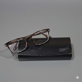 Occhiali da vista Persol con una montatura tartarugata. Le misure sono 54□18 140. - Montatura in acetato. - Design rettangolare. - Dettagli in metallo sulle aste.