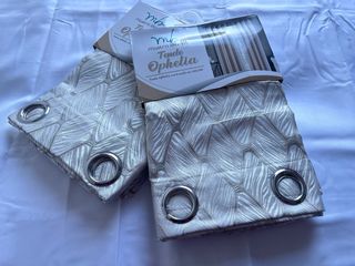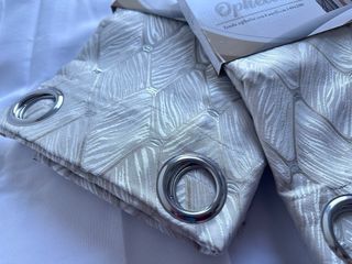 2 Tende Ophelia -Confezionata Mai Usata- Tessuto Coprente Misura 130x275 Colore Bianco / Argento Disegno Rombo Tinta su Tinta Contrasto Lucido Argento. Elegante E Piacevole in ogni Ambiente. Tessuto Resistente e Compatto. Dotata di 8 Anelli nella parte superiore per facilitarne l'uso Tessuto Lavabile in Lavatrice 30° Per Qualsiasi Dubbio Sono A Vostra Disposizione