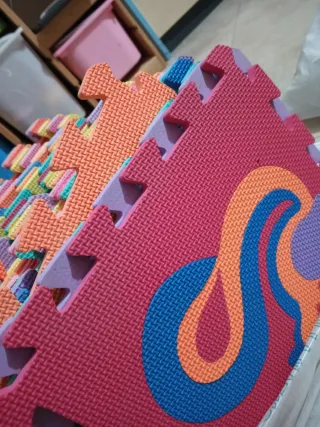 Set di 36 tappeti puzzle colorati, ideali per creare un'area gioco sicura e divertente. - Ogni tappetino è realizzato in materiale morbido e resistente. - I colori vivaci stimolano la creatività dei bambini. - Facili da assemblare e smontare.