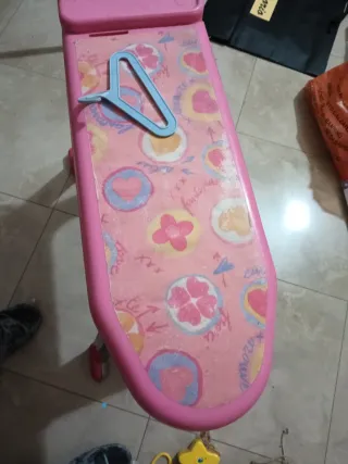 Asse da stiro giocattolo per bambini, ideale per il gioco. - Colore rosa vivace. - Design con stampe colorate e cuori.