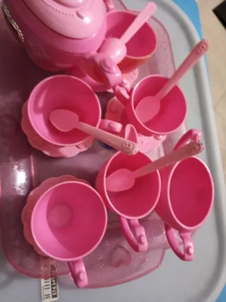 Set da tè rosa Barbie con vassoio e tazzine. - Include vassoio. - Include tazzine. - Include cucchiaini.