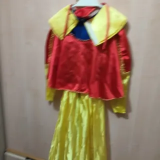 Bellissimo vestito da Biancaneve per bambina. - Taglia 5-7 anni. - Colori: blu, rosso e giallo. - Dettagli dorati sul corpetto e sulle maniche. - Ampia gonna gialla.