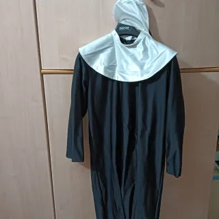 Costume da suora per bambina, taglia 10 anni. Include cappuccio e colletto. - Vestito nero lungo - Colletto bianco - Cappuccio bianco