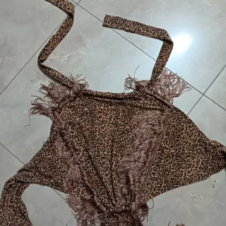 Body per gara di ballo con stampa leopardata e frange. - Disponibile nelle taglie 4 e 7 anni. - Design accattivante con frange. - Tessuto confortevole per il movimento.