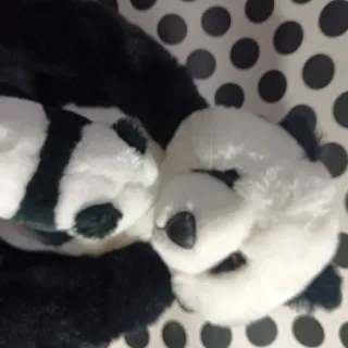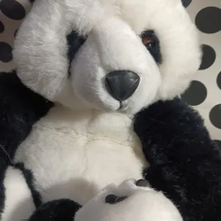 Morbido peluche di un panda con il suo cucciolo. - Dettagli in peluche nero e bianco. - Occhi marroni. - Naso nero.