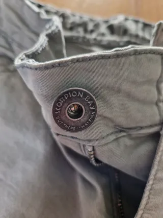 Pantaloni cargo Scorpion Bay in taglia XL. Sono di colore grigio chiaro e presentano tasche laterali. - Chiusura con zip e bottone. - Elastico in vita. - Tasche cargo sulle gambe.