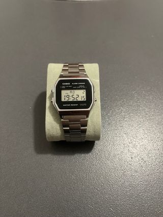 Orologio da polso Casio con cassa e cinturino in metallo argentato. - Display digitale. - Funzione allarme. - Cronometro integrato. - Resistente all'acqua. Leggero graffio sul quadrante. Perfettamente funzionante. Le foto fanno parte della descrizione. #casio #watchstyle #orologidapolso #orologiouomo #vintage