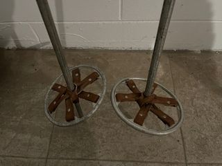 Splendide racchette da sci d'epoca, risalenti agli anni '50 o '60. Perfette per collezionisti o per chi ama lo stile retrò. - Struttura in metallo. - Cestelli rotondi con inserti in cuoio.