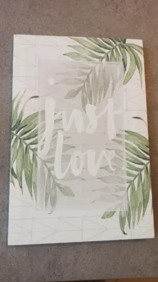 Bellissimo quadretto decorativo con un motivo di foglie verdi. - Dimensioni: 20 x 30 cm. - Design con foglie tropicali. - Sfondo a motivo geometrico.