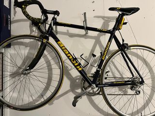 Bicicletta da corsa Bianchi Reparto Corse. - Telaio in lega di alluminio. - Modello 7000 Alloy Pro. - Manubrio con nastro giallo e nero.