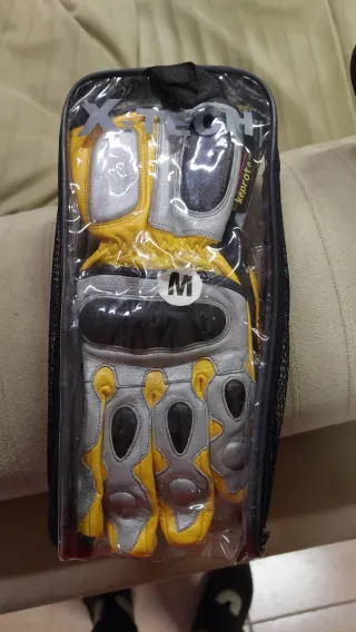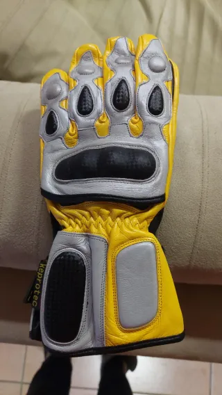 Guanti da moto X-TECH in pelle e kevlar, mai utilizzati. - Taglia M - Combinazione di pelle e kevlar per protezione e flessibilità - Design bicolore giallo e grigio