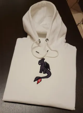Felpa con cappuccio bianca ispirata a Dragon trainer...sdendato..Il design del drago è dettagliato e colorato. Felpe di buona qualità - Cappuccio con laccetti bianchi. - Tessuto morbido e confortevole.