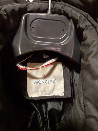 Elegante giubbotto Moncler nero. le cerniere delle tasche sono rotte ma da brava sarta sono recuperabili. La vignetta é leggermente scolorita e il filo per appenderlo si sta scucendo. - Cintura elastica in vita con fibbia. - Dettagli con logo Moncler.