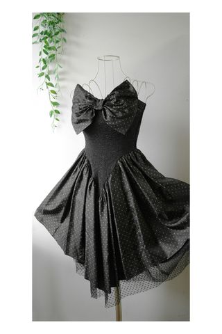 Party vintage 80s💖 Abito nero con corpetto arricciato Ispirazione Vittoriana Ampio fiocco e gonnellone Pois dorati Sottogonna in tulle morbido Super chic! Ottime condizioni Taglia XS/S Busto 36 cm Vita 33 cm Fianchi 90 cm Larghezza fondo 250 cm Lunghezza 112 cm Misure flat - raddoppia per le circonferenze e confronta con un tuo capo simile Sculpted Dark gothic cocktail dress mugler couture vintage style #partydress #sculpteddress #sculptedfit #vintage80sdress #darkdress #darkchic #gothicstyle #gothicdress #vintagechic #romanticstyle #rarevintage #muglerstyle #vintagedressing #vintagepartydress #abitofiocco #papillondress