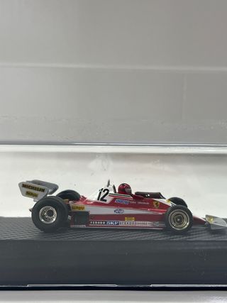 Modellino della Ferrari 312 T3, guidata da Gilles Villeneuve. - Scala 1:43 - Dettagli fedeli all'originale e pilota - Base espositiva inclusa
