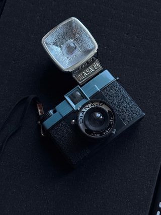 Diana-F Vintage originale con scatola flash originale e flash digitale fatto da Lomography. Ottima fotocamera 120 per chi vuole sperimentare questo formato senza spedere tanto! #dianaf #vintage #filmphotography #flash #120film #film - Design iconico.