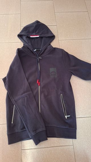 Felpa con cappuccio e zip frontale. - Logo stampato sul petto. - Tasche laterali con zip. - Polsini e fondo a costine.