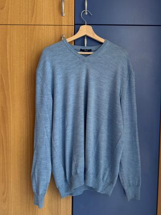 Maglioncino lana merino extra fine blu 2XL