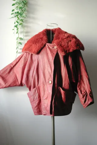 Giacca rossa pelle e pelliccia vintage anni '80
