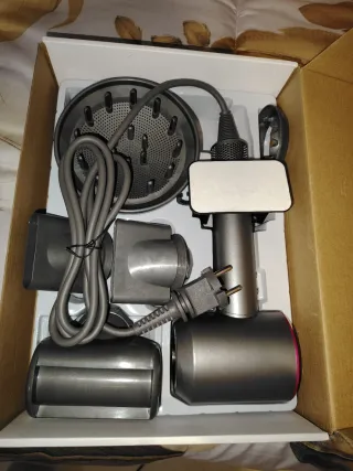 Asciugacapelli Dyson Supersonic in elegante finitura grigio e rosa. - Diffusore incluso. - Accessori per lo styling. - Cavo di alimentazione.