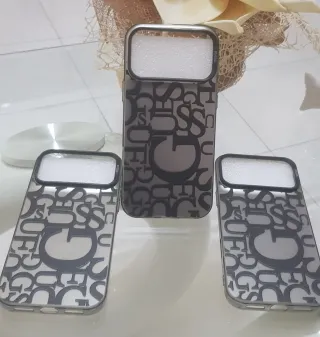 Tre Cover Guess per iPhone 17 Pro Max con un design unico. - Fantasia con lettere G e logo Guess. - Materiale resistente.