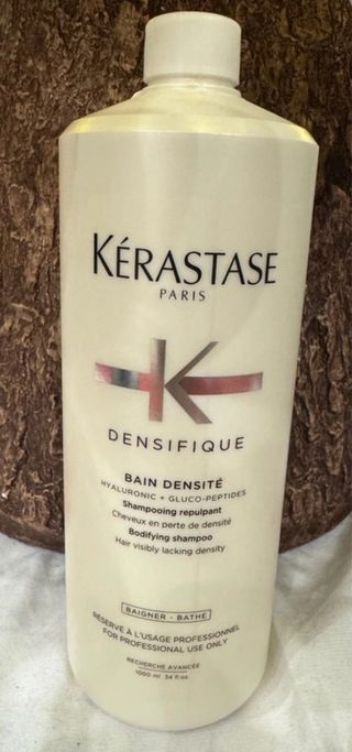 Shampoo Kérastase Bain Densité da 1000 ml, formulato per capelli che necessitano di maggiore densità. La sua formula è pensata per capelli visibilmente privi di densità. - Shampoo per capelli con perdita di densità. - Contiene Hyaluronic + Gluco-Peptides.