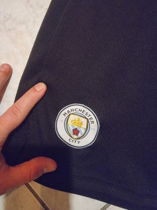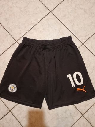 Pantaloncini da calcio del Manchester City, taglia M. - Logo Manchester City sul lato sinistro. - Numero 10 stampato sul lato destro. - Logo Puma arancione sul lato destro.