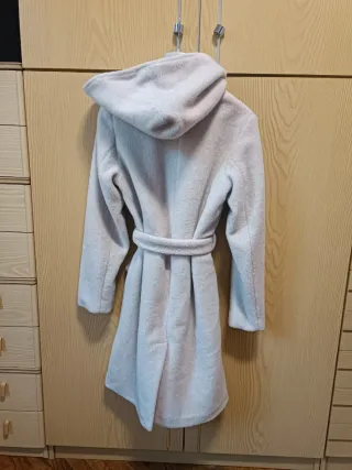 Morbido cappotto da donna con cappuccio, perfetto per le giornate più fresche. La cintura in vita permette di regolare la vestibilità. - Tessuto soffice e confortevole. - Design con cappuccio integrato. - Tasche laterali pratiche. - Cintura in vita per chiusura. Colore beige chiaro