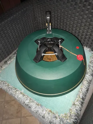 Supporto per albero di Natale Krinner. modello Comfort M - Colore verde con finiture dorate. - Realizzato in plastica e gomma.