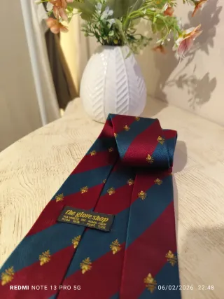 Elegante cravatta regimental di The Glove Shop, realizzata in pura seta. - Design a righe con motivo floreale. - Etichetta interna con dettagli: Via Veneto 105, Roma, Italia. - Composizione: 100% Seta Pura.