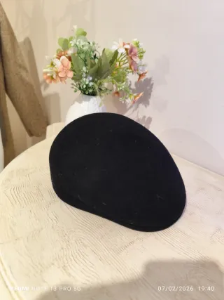 Berretto basco invernale in morbido tessuto nero, perfetto per le giornate più fredde. Presenta un delicato ricamo floreale tono su tono. - Design classico e versatile. - Dettaglio ricamato sul davanti.