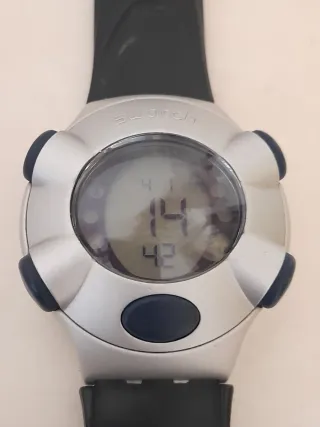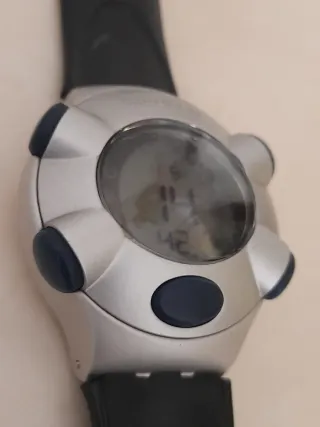 Orologio Swatch Beat con cinturino nero e cassa argentata. - Design moderno e sportivo. - Quadrante digitale.