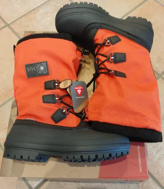 Scarponi da neve Helly Hansen, Artic Patrol, unisex, massimo calore fino a -40 gradi, unisex nuovi con scatola. Calzano un 39-40 Gli scarponi Helly Hansen Arctic Patrol mantengono i piedi caldi e asciutti, indipendentemente da ciò che la natura ci offre. Le temperature rigide non possono competere con l'isolamento PrimaLoft da 400 g, combinato con una fodera in feltro rimovibile e una tomaia in pelle di pecora sintetica. Oltre all'isolamento, la lamina protettiva in alluminio sotto il piede blocca efficacemente il freddo. La membrana in gomma impermeabile e la tomaia in tessuto rivestita con cuciture nastrate impediscono la penetraz