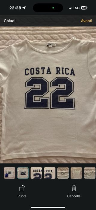 Maglietta bianca con stampa Costa Rica 22 sul davanti. - Stampa Costa Rica 22 sul davanti.