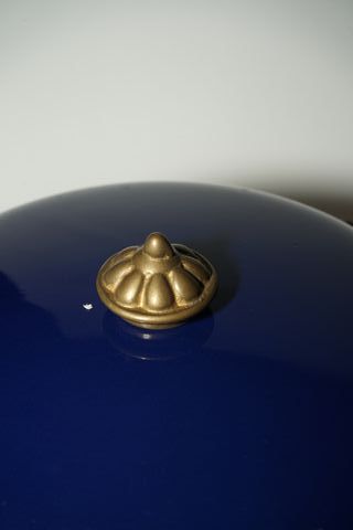 Set di pentole smaltate vintage, colore blu con dettagli in metallo dorato. Comprende più pezzi di diverse dimensioni, ideali sia per uso quotidiano sia come elementi decorativi per cucine in stile retrò o rustico. Smaltatura lucida, design classico e manici robusti. Buone condizioni generali.