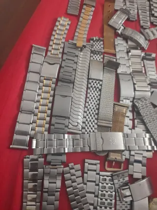 Lotto di spezzoni e bracciali per orologi vintage, ideali per riparazioni o progetti. - Diversi stili e dimensioni. - Materiali misti.
