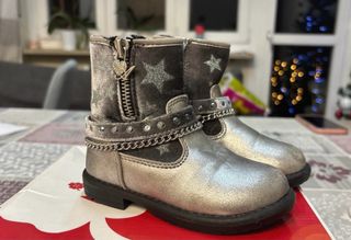 Stivaletti da bambina in ottime condizioni, quasi nuovi. - Taglia 22. - Design con stelle argentate. - Dettagli con catena e strass.
