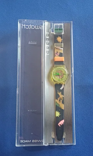 Swatch Bermudas anno 1991 completo di custodia. L'orologio presenta dei graffi sul vetro , vista l'età il cinturino potrebbe sgretolarsi/ rompersi vendo a 95€