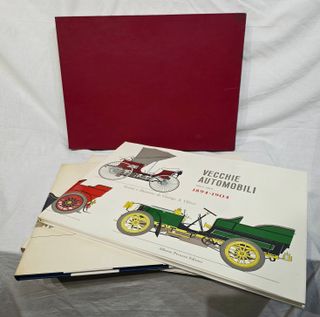 Edizione limitata di questi 3 libri con cofanetto, originale e completo, "Vecchie Automobili" il libro fa parte della terza serie che copre il periodo storico dal 1894 al 1904. Copryright 1966 - Hugh Evelyn Limited - Alberto Peruzzo editore - numero di edizione 99/66 . Copertina cartonata a colori formato Grande 48x35x1 cm con cofanetto che contiene i 3 libri. Le foto fanno parte della descrizione.